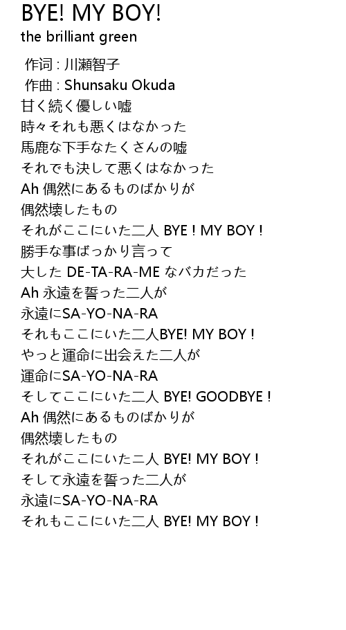 | [00:56.450] | それがここにいた二人 BYE ! MY BOY ! |