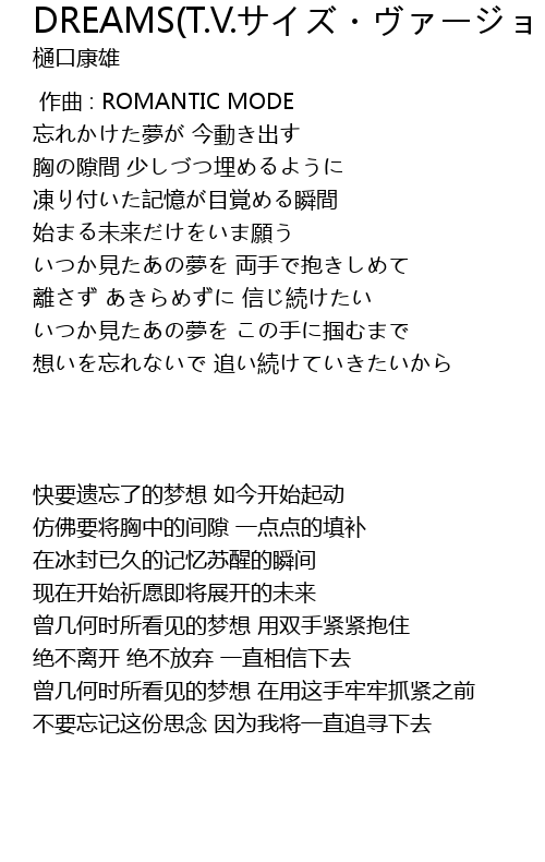 | [00:11] | 快要遗忘了的梦想 如今开始起动 |