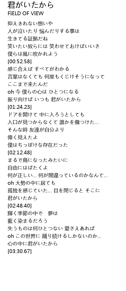 | [01:17.61] | 振り向けば いつも 君がいたから |