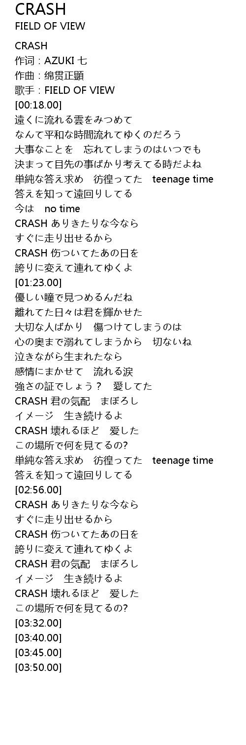 | [03:07.00] | CRASH 伤ついてたあの日を |