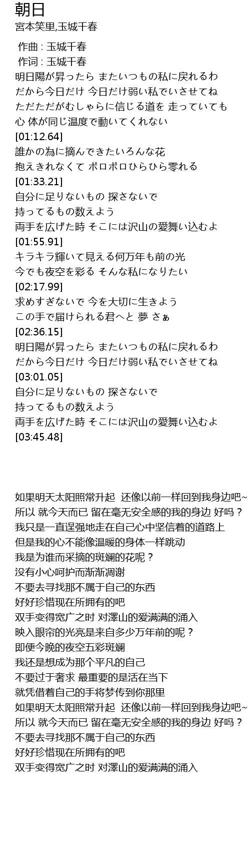 | [02:39.69] | 如果明天太阳照常升起 还像以前一样回到我身边吧~ |