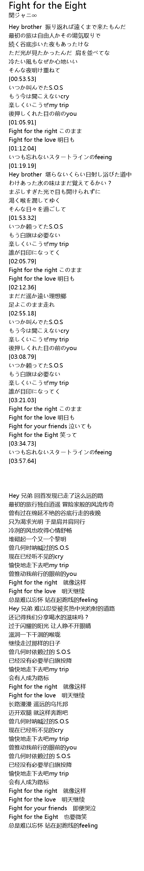 | [03:30.32] | Fight for the Eight 笑って |