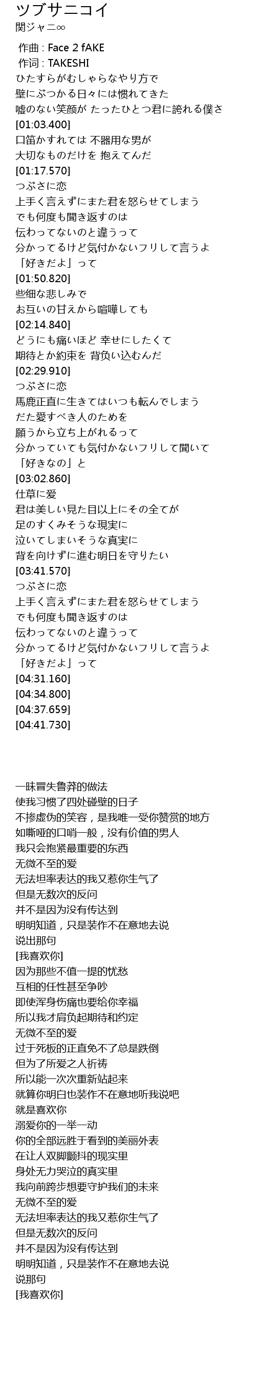 | [03:45.190] | 无法坦率表达的我又惹你生气了 |