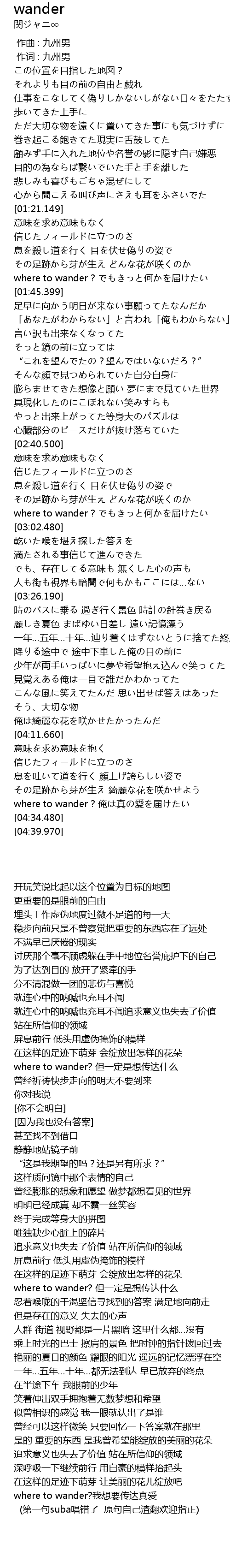 | [01:38.879] | where to wander? 但一定是想传达什么 |