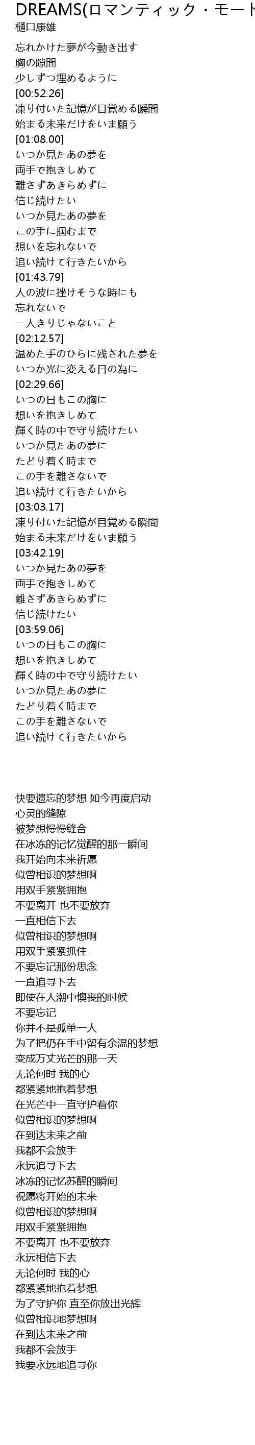 | 歌曲 | DREAMS(ロマンティック・モード) |