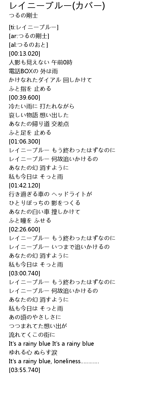| [02:38.450] | レイニーブルー いつまで追いかけるの |