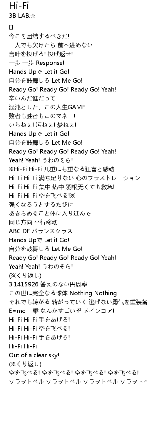 | Hi-Fi Hi-Fi 空を飞べる! | |