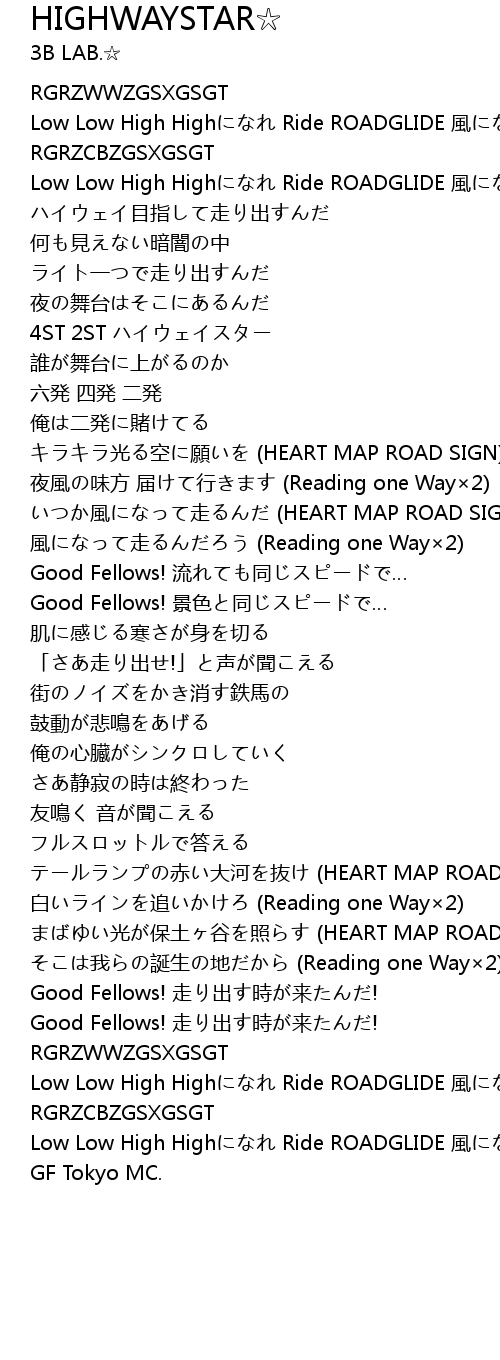 | Low Low High Highになれ Ride ROADGLIDE 風になれHIGHWAY | |