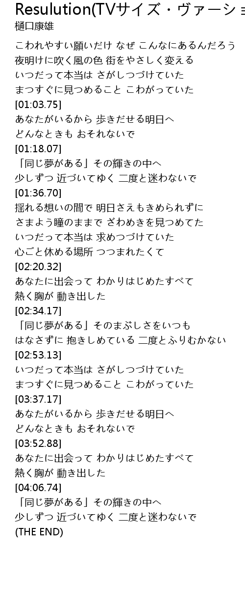 | [00:55.80] | まつすぐに見つめること こわがっていた |