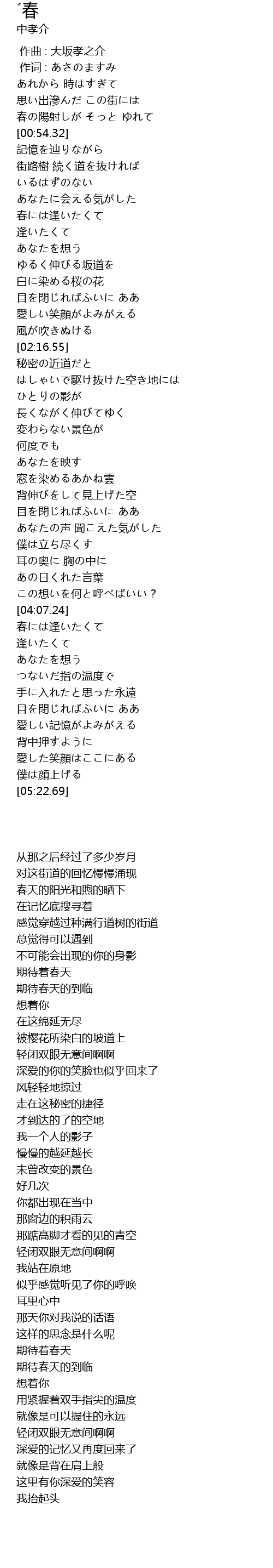 | [04:14.72] | 期待春天的到临 |