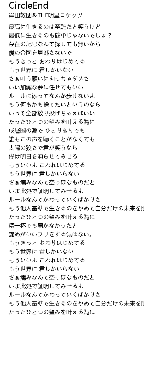 | さぁ叶う願いに拘っちゃダメさ いい加減な夢に任せてもいい | |