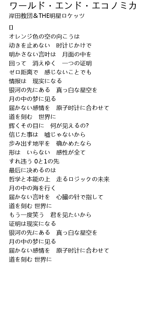 | 歌曲 | ワールド・エンド・エコノミカ |