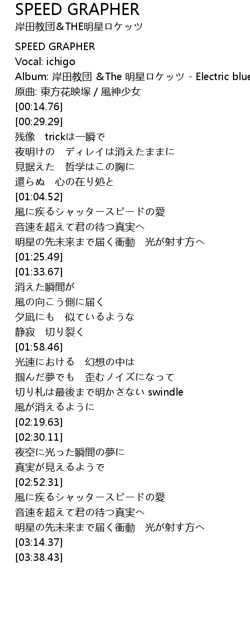 | [02:53.70] | 風に疾るシャッタースピードの愛 |