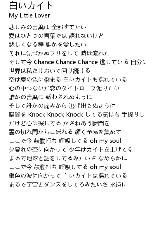 | 暗闇を Knock Knock Knock してる気持ち 手探りしてあせってる | |