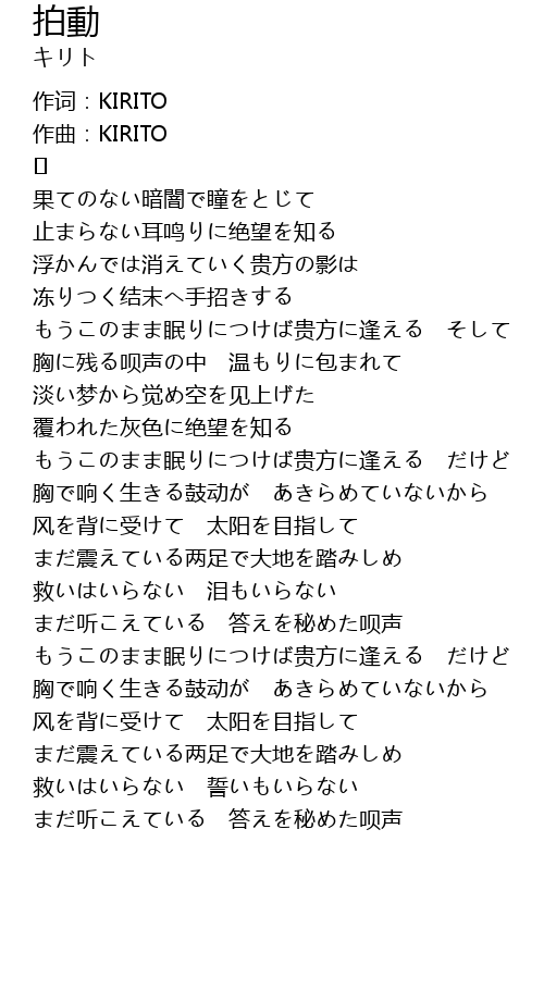 | 胸で响く生きる鼓动が あきらめていないから | |