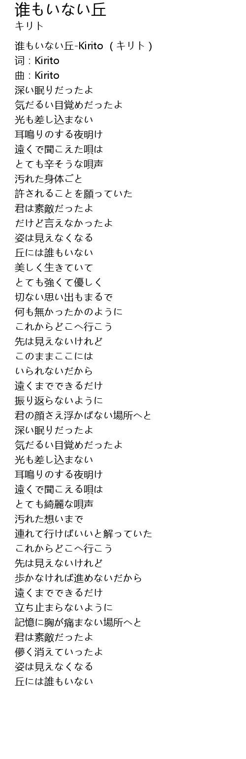 | [00:00.317] | 谁もいない丘-Kirito (キリト) |