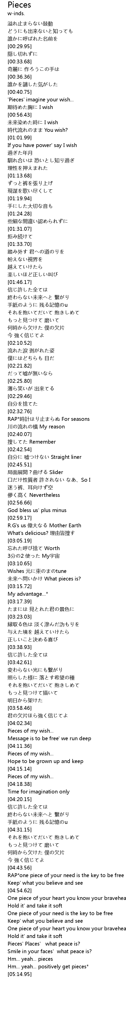 | [00:49.95] | 'Pieces' imagine your wish... |