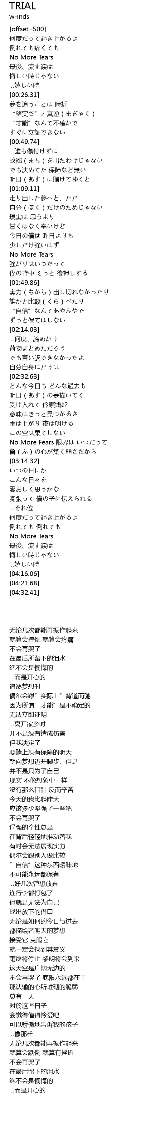 No More Fears 限界は いつだって |