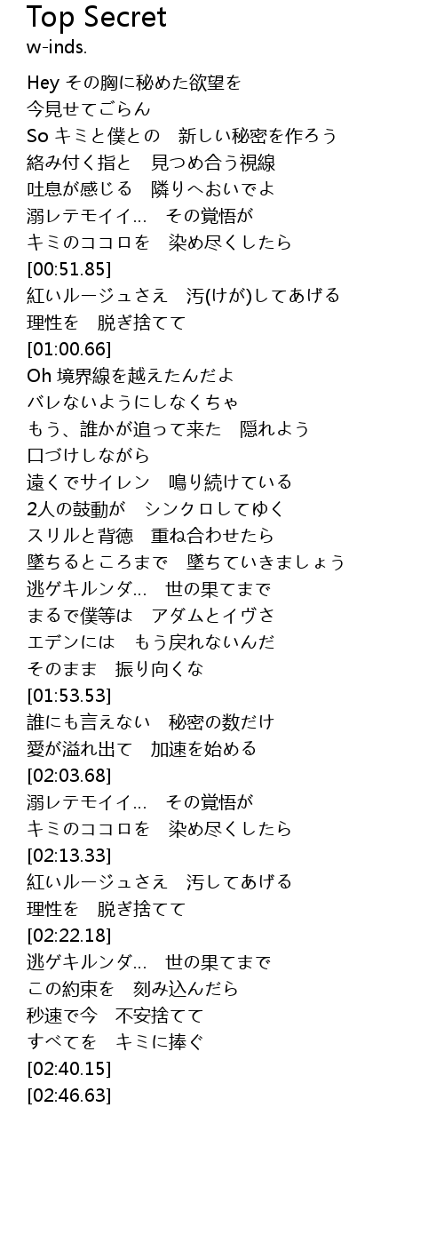 | [01:54.82] | 誰にも言えない 秘密の数だけ |