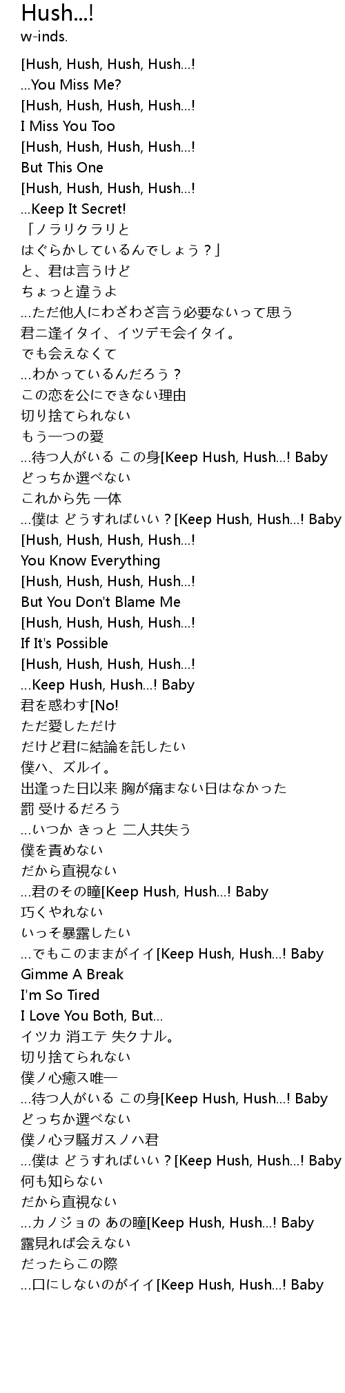 | [02:22.520]…カノジョの あの瞳[Keep Hush, Hush...! Baby] | |
