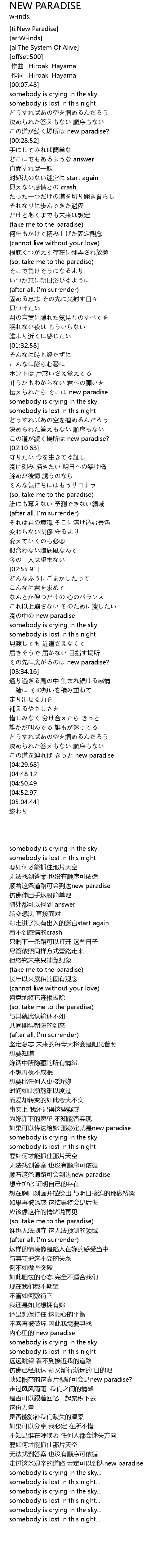 | [04:57.28][04:48.12][04:38.81] | somebody is crying in the sky... |