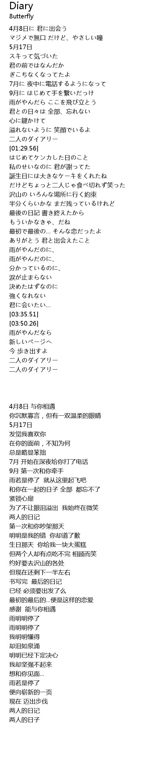 | [02:30.32] | zuì hòu rì jì shū zhōng |