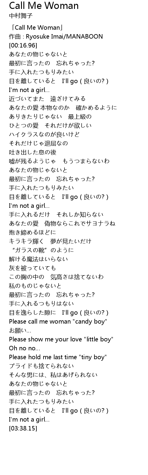 | [00:00.96] | 「Call Me Woman」 |