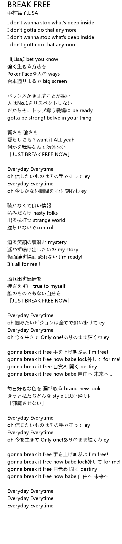 | gonna break it free 手を上げ叫ぶよ I'm free! | |