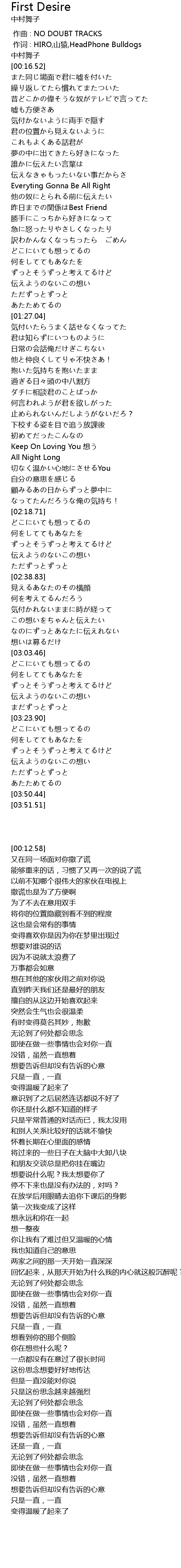 | [00:00.00] | 作曲 : NO DOUBT TRACKS |