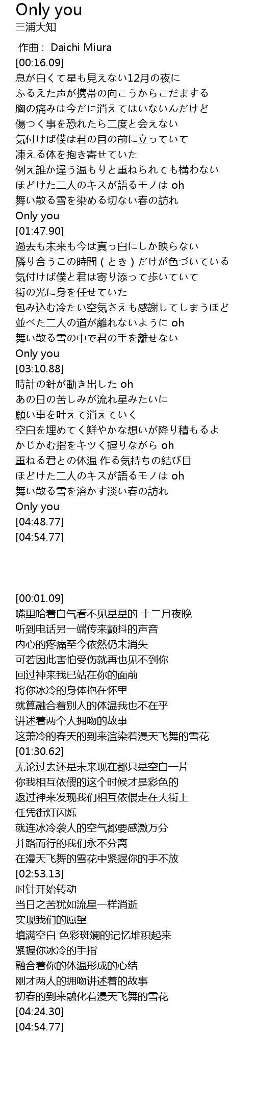 | [02:53.13] | Only you |