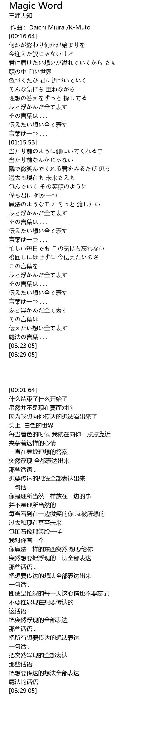 | [00:00.00] | zuo qu : Daichi Miura KMuto |