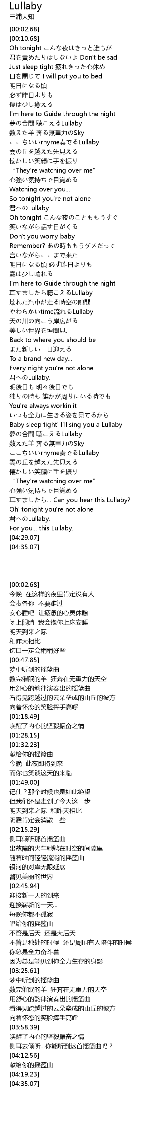 | [04:07.70] | 耳すましたら... Can you hear this Lullaby? |
