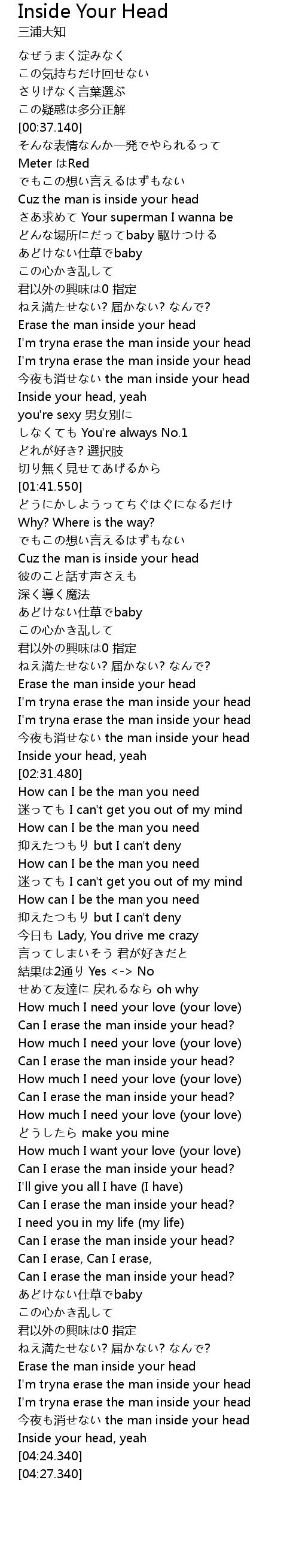 | [03:50.210] | Can I erase the man inside your head? |