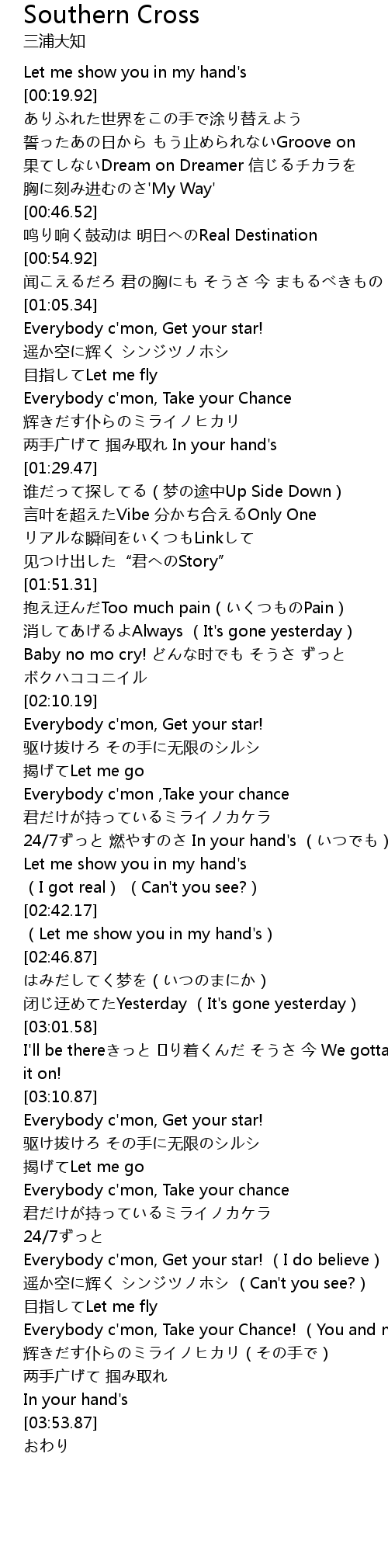 | [03:30.25] | Everybody c'mon, Get your star! (I do believe) |