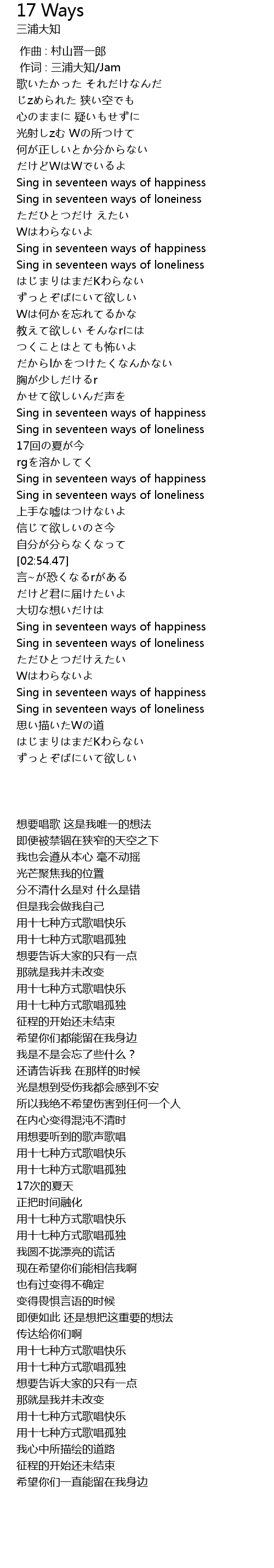 | [02:31.50] | Sing in seventeen ways of happiness |