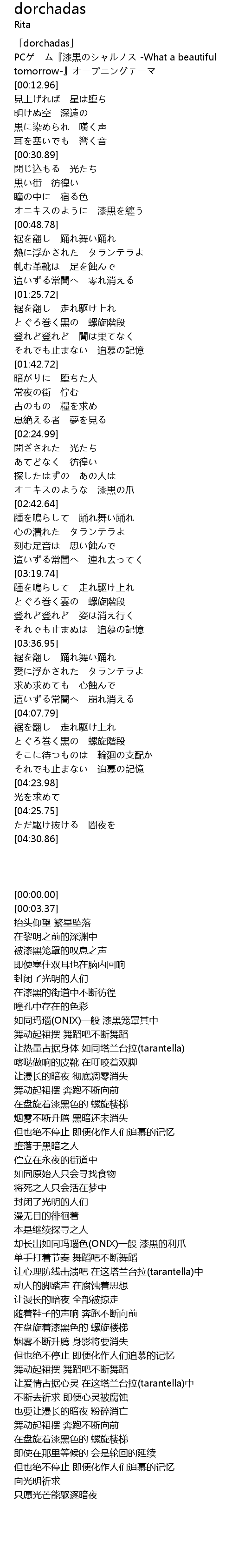 | [00:00.00] | 「dorchadas」 |