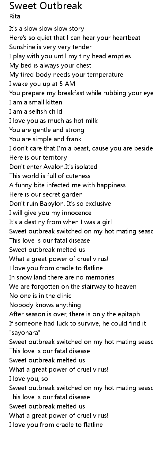 | [04:18.35] | Sweet outbreak switched on my hot mating season |
