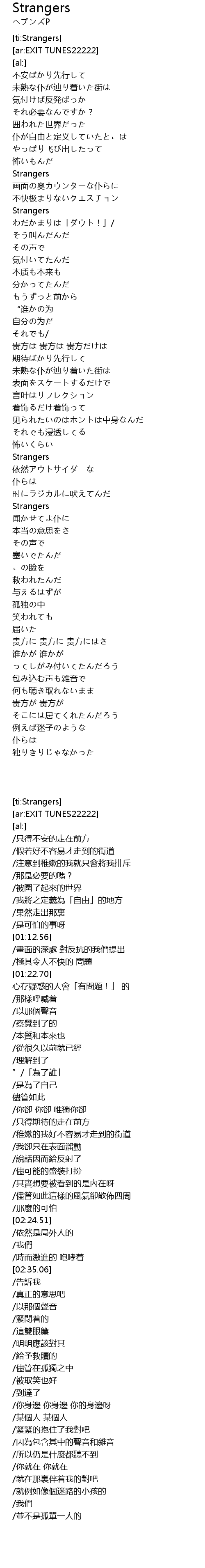 | [01:22.70] | Strangers |