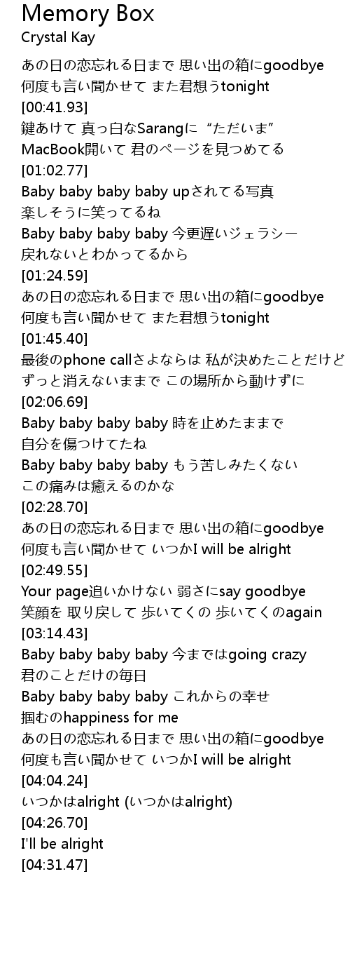 | [02:28.99] | あの日の恋忘れる日まで 思い出の箱にgoodbye |