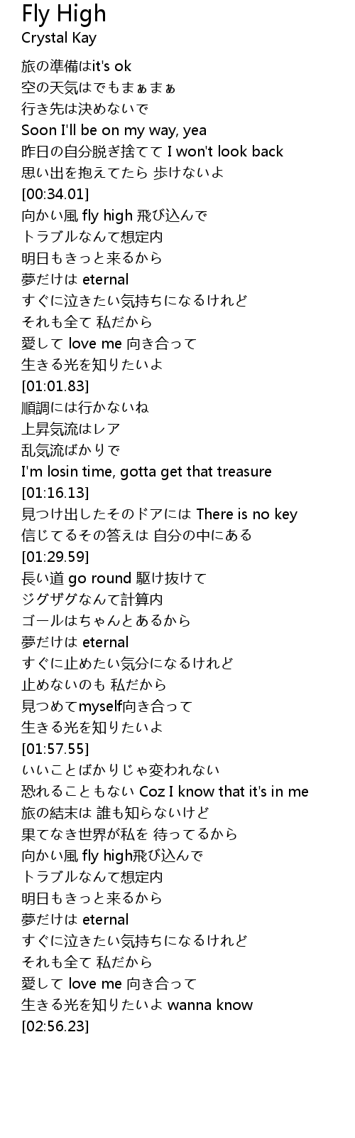 | [00:34.26] | 向かい風 fly high 飛び込んで |