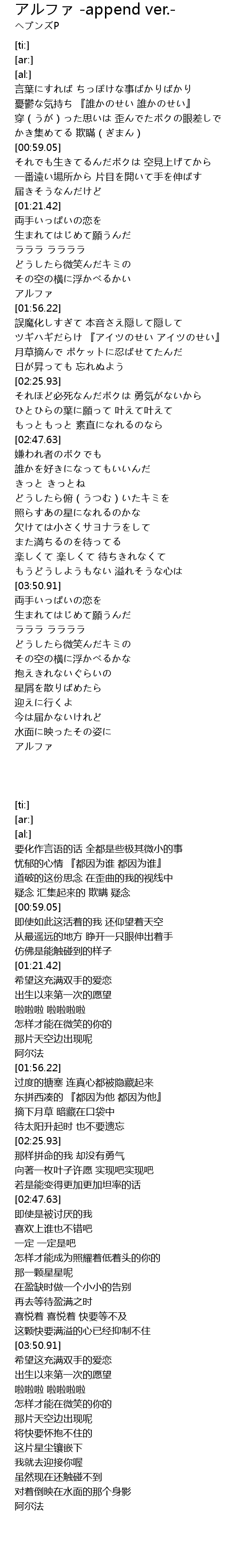 | [02:41.32] | もっともっと 素直になれるのなら |