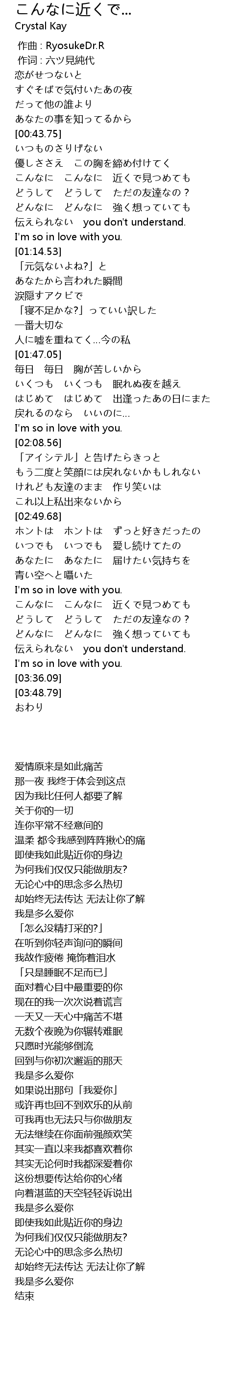 | [00:53.10] | 即使我如此贴近你的身边 |