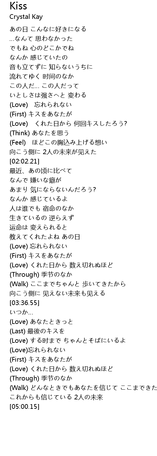 | [01:36.68] | (Love) くれた日から 何回キスしたろう? |