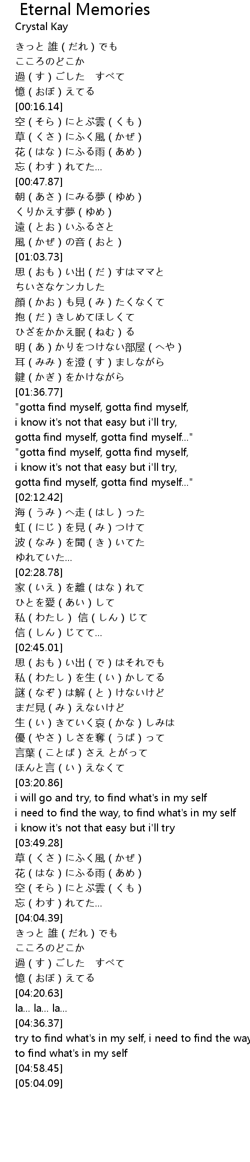 | [02:08.06] | gotta find myself, gotta find myself..." |