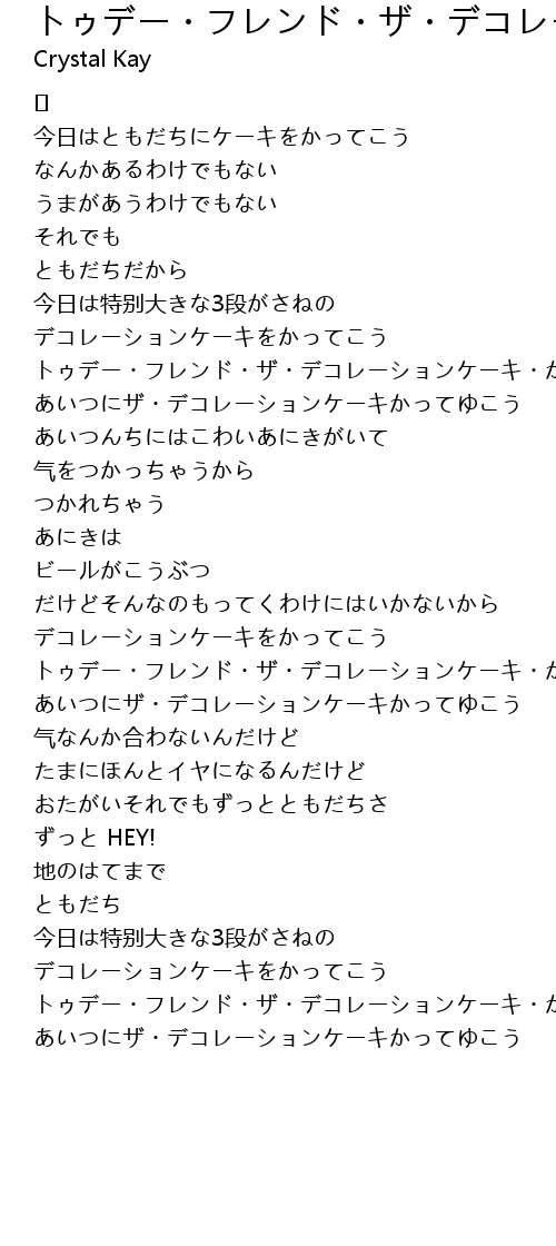 | 歌曲 | トゥデー・フレンド・ザ・デコレーション・ケーキ・かうかう・GO |