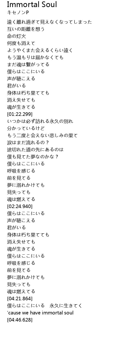 | [01:28.255] | いつかは必ず訪れる永久の別れ |