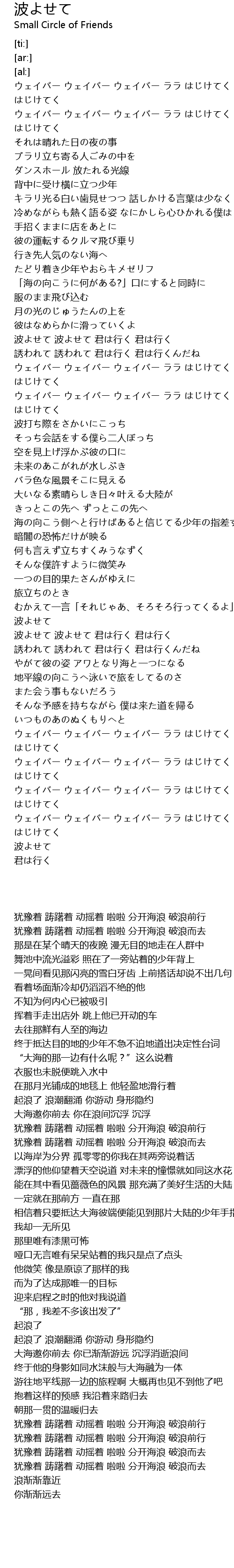 | [03:03.85] | 波よせて |