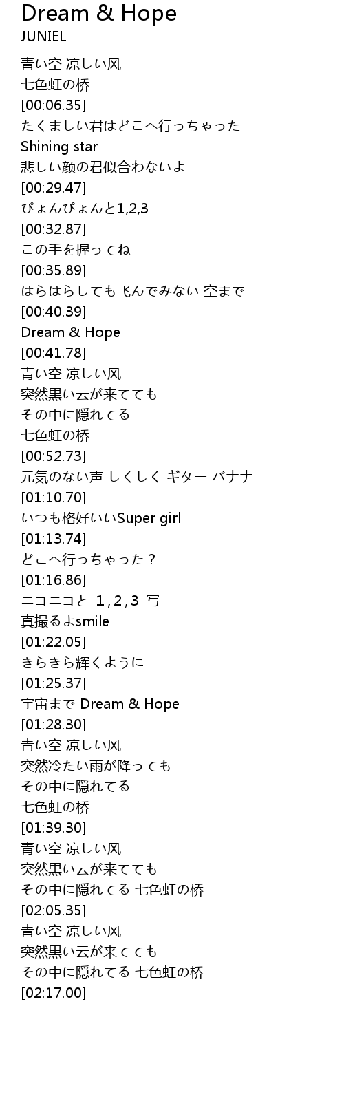| [00:41.04] | Dream & Hope |
