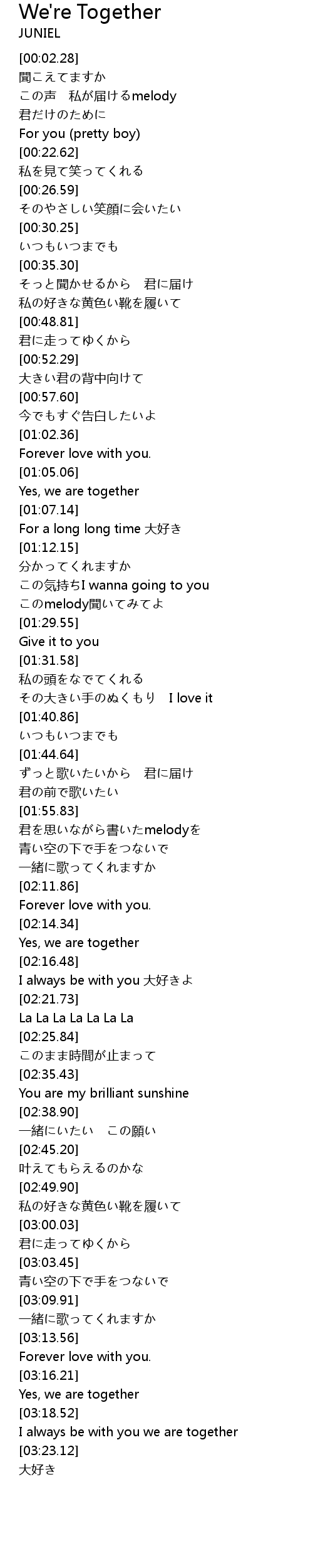 | [00:38.15] | そっと聞かせるから 君に届け |