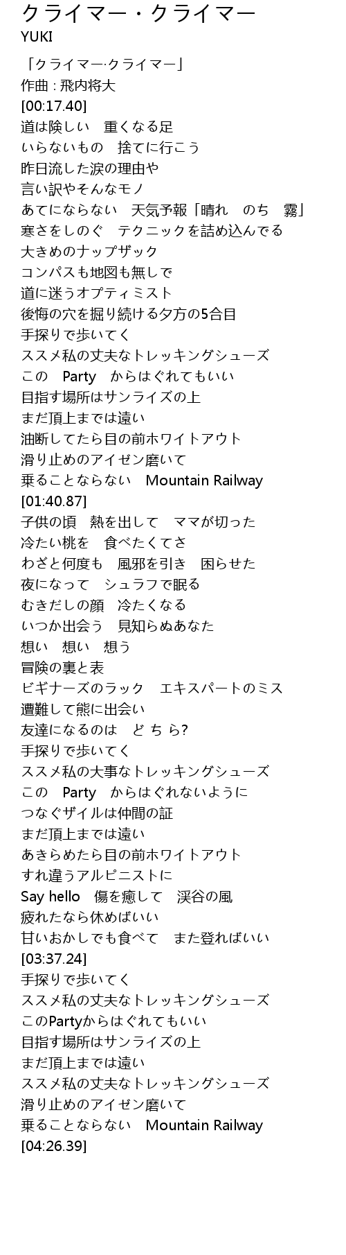 | [00:01.40] | 「クライマー·クライマー」 |